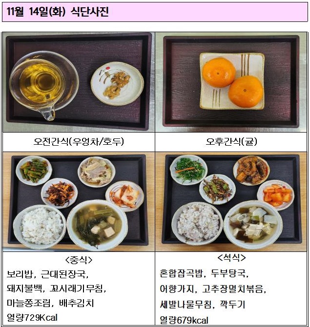 11¿ù 14ÀÏ(È) ½Ä»ç ¹× °£½Ä»çÁø °Ô½ÃÇÕ´Ï´Ù.